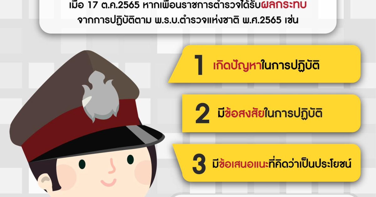 นับตั้งแต่ พ.ร.บ.ตำรวจแห่งชาติ พ.ศ.2565 มีผลบังคับใช้เมื่อวันที่ 17 ตุลาคม 2565 หากเพื่อนข้าราชการตำรวจได้รับผลกระทบจากการปฏิบัติตาม พ.ร.บ.ดังกล่าว เช่น