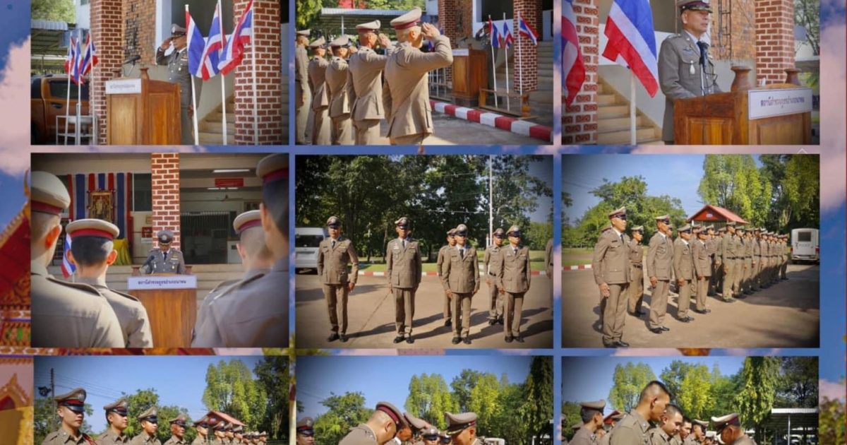 พ.ต.อ.เชาว์ ป้อมงาม ผกก.สภ.นาทม ,พ.ต.ท.ศักดิ์ งามเสน่ห์ รอง ผกก.สส.สภ.นาทม ,พ.ต.ท.ประวัติ พลสุวรรณ สว.(สอบสวน) สภ.นาทม ,พ.ต.ต.ภูมิภัทร บุญนำ สวป.สภ.นาทม ,พ.ต.ต.ปริพล แก้วพล สว.สส.สภ.นาทม พร้อมด้วยข้าราชการตำรวจ สภ.นาทม จัดพิธีถวายสัตย์ปฏิญาณ เนื่องในวันตำรวจ 17 ตุลาคม 2566 และมอบวัตถุมงคลจากสำนักงานตำรวจแห่งชาติ เพื่อเป็นขวัญและกำลังใจในการปฏิบัติหน้าที่ให้แก่ข้าราชการตำรวจในสังกัด ณ สถานีตำรวจภูธรนาทม อ.นาทม จ.นครพนม