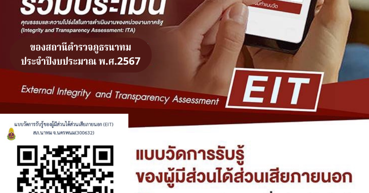 สถานีตำรวจภูธรนาทม จังหวัดนครพนม ขอเชิญชวน ผู้มารับบริการ / มาติดต่อ สถานีตำรวจ ร่วมประเมินแบบวัดการรับรู้ของผู้มีส่วนได้ส่วนเสียภายนอก (External Integrity and Transparency Assessment: EIT)สำหรับนำไปพัฒนาปรับปรุงการให้บริการของสถานีตำรวจ ประจำปีงบประมาณ 2567 √นำไปปรับปรุงคุณภาพการดำเนินงานและการให้บริการของสถานีตำรวจ √นำไปปรับปรุงการใช้อำนาจตำแหน่งหน้าที่ ตามกระบวนการยุติธรรม ด้วยความเป็นธรรม √นำไปปรับปรุงประสิทธิภาพการสื่อสารและพัฒนาช่องทางการสื่อสารต่างๆ √นำไปปรับปรุงระบบการทำงาน |