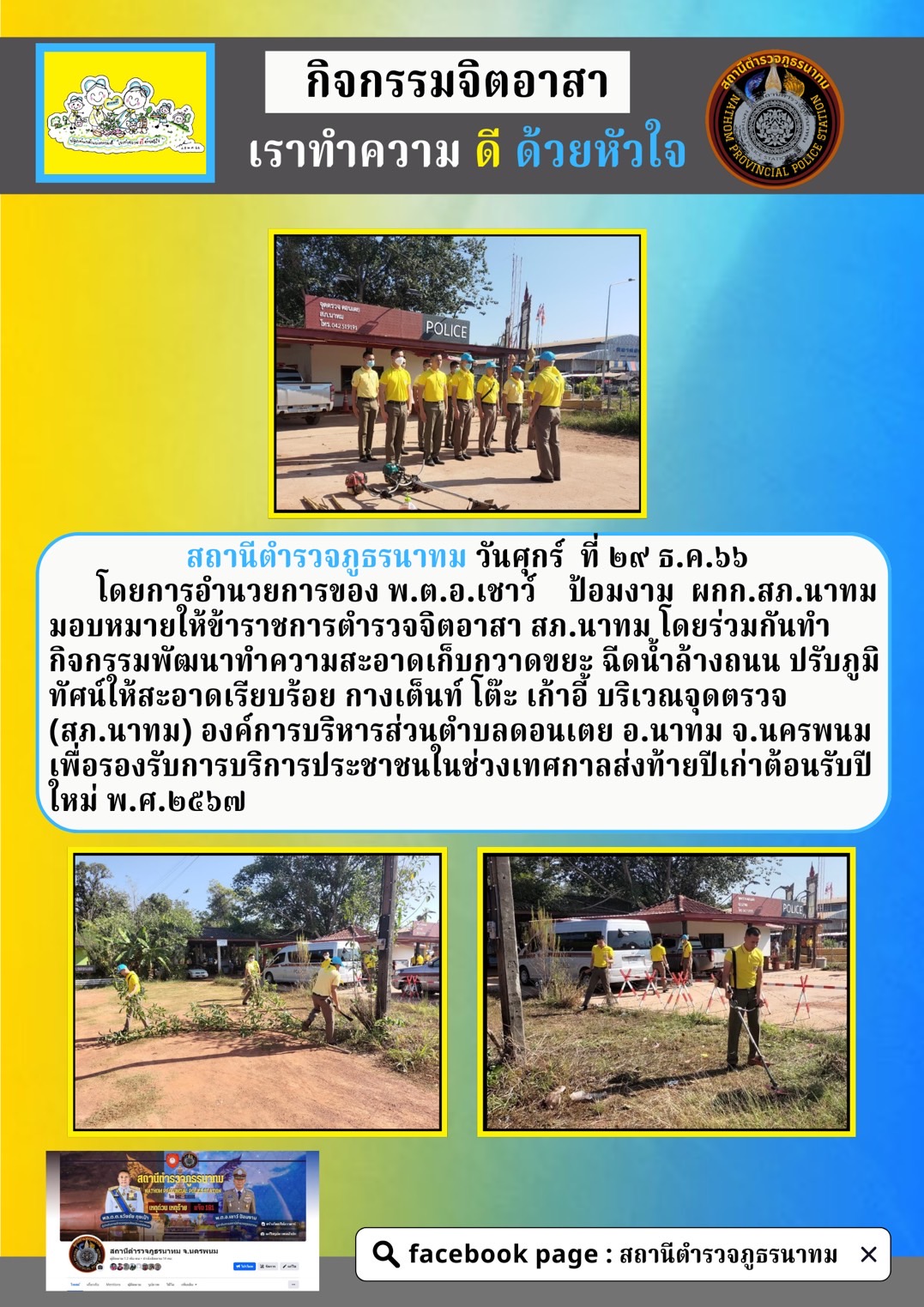 31 ธ.ค. 66 เวลา 09.00 น. (จิตอาสาพัฒนา) เนื่องในวันสำคัญก่อนเทศกาลวันปีใหม่ 2567 โดยการอำนวยการของ พ