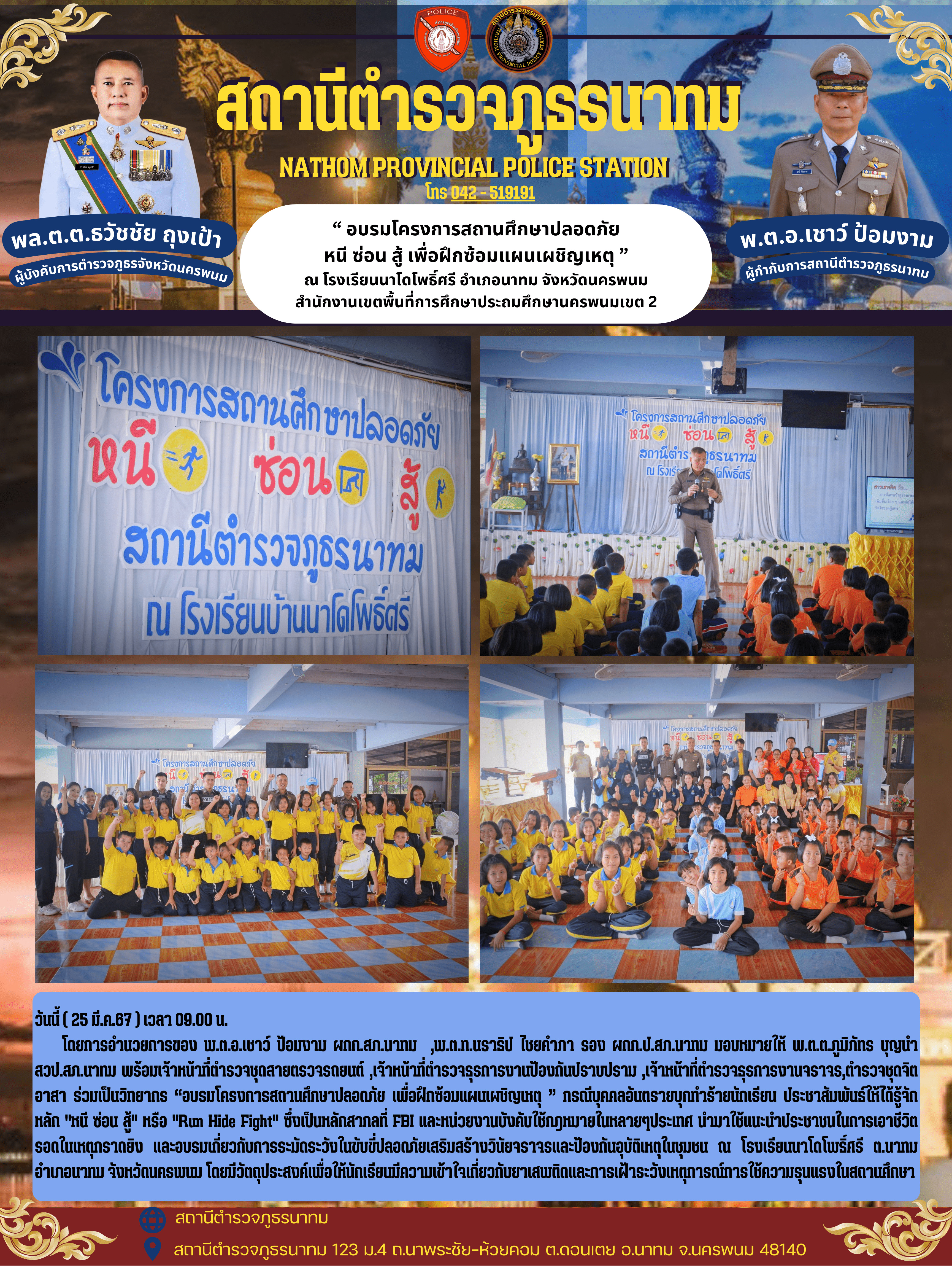 วันที่ ( 2 มี.ค.67 ) เวลา 14.00 น. โดยการอำนวยการของ พ.ต.อ.เชาว์ ป้อมงาม ผกก.สภ.นาทม มอบหมายให้ พ.ต.