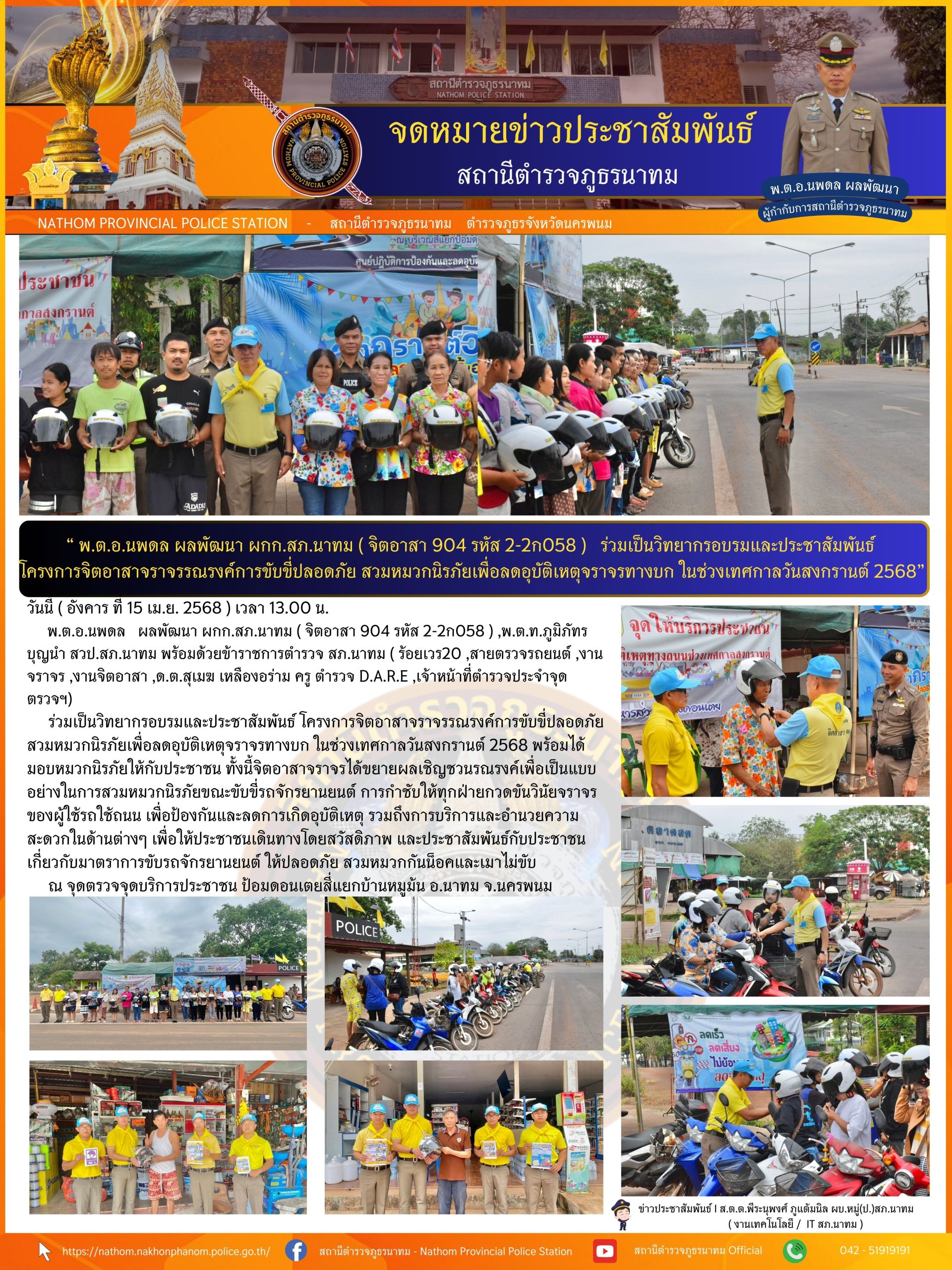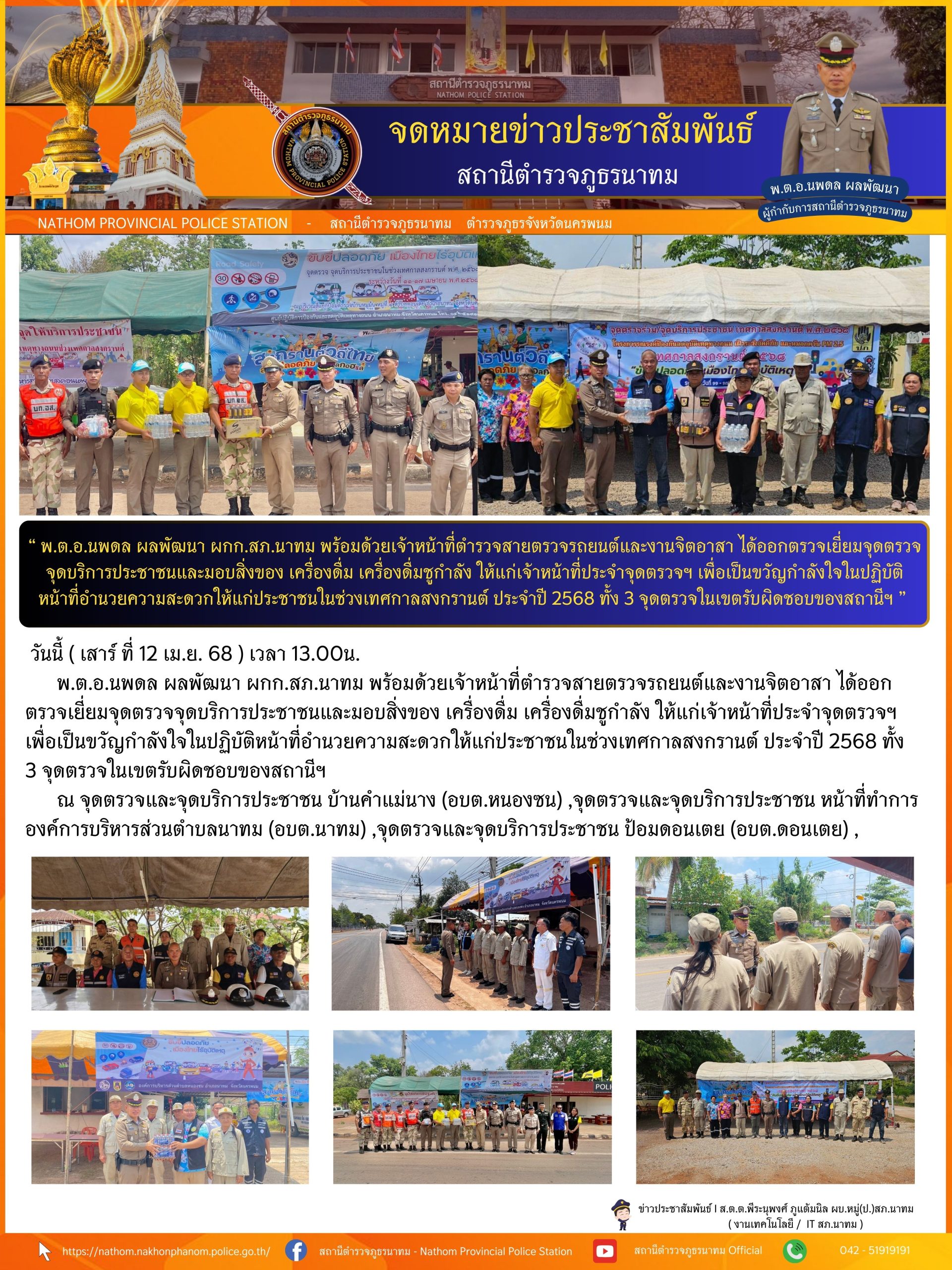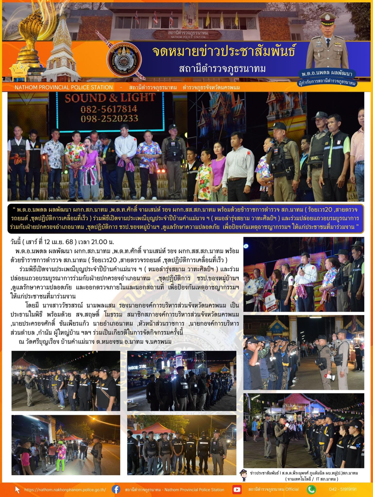 พ.ต.อ.นพดล ผลพัฒนา ผกก.สภ.นาทม พร้อมด้วยเจ้าหน้าที่ตำรวจสายตรวจรถยนต์และงานจิตอาสา สภ.นาทม ได้ออกตรวจเยี่ยมโรงเรียนตำรวจตระเวนชายแดนช่างกลปทุมวันอนุสรณ์ 8 กก.ตชด.23 โดยมี พ.ต.ท.รำไพ งิ้วไชยราช ปฏิบัติหน้าที่ครูใหญ่ พร้อมด้วยคณะครูร่วมให้การต้อนรับเป็นอย่างดี และได้สอบถามปัญหาข้อขัดข้องในการดำเนินงานในการจัดกิจกรรม ,โครงการต่าง ๆ สามารถประสานทางสถานีตำรวจภูธรนาทมเพื่อมาร่วมแก้ไขปัญหาและดูแลคุ้มครอง รักษาความปลอดภัยแก่ทางสถานศึกษา คณะครูและนักเรียนในสังกัดด้วยความยินดียิ่ง