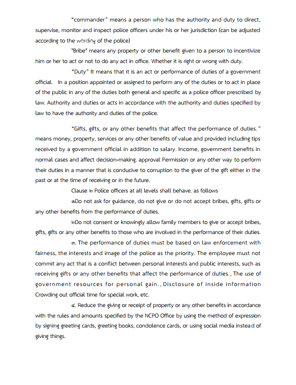 เจตนารมณ์ที่จะไม่รับของขวัญและของกำนัลทุกชนิดจากการปฏิบัติหน้าที่ ( No Gift Policy )