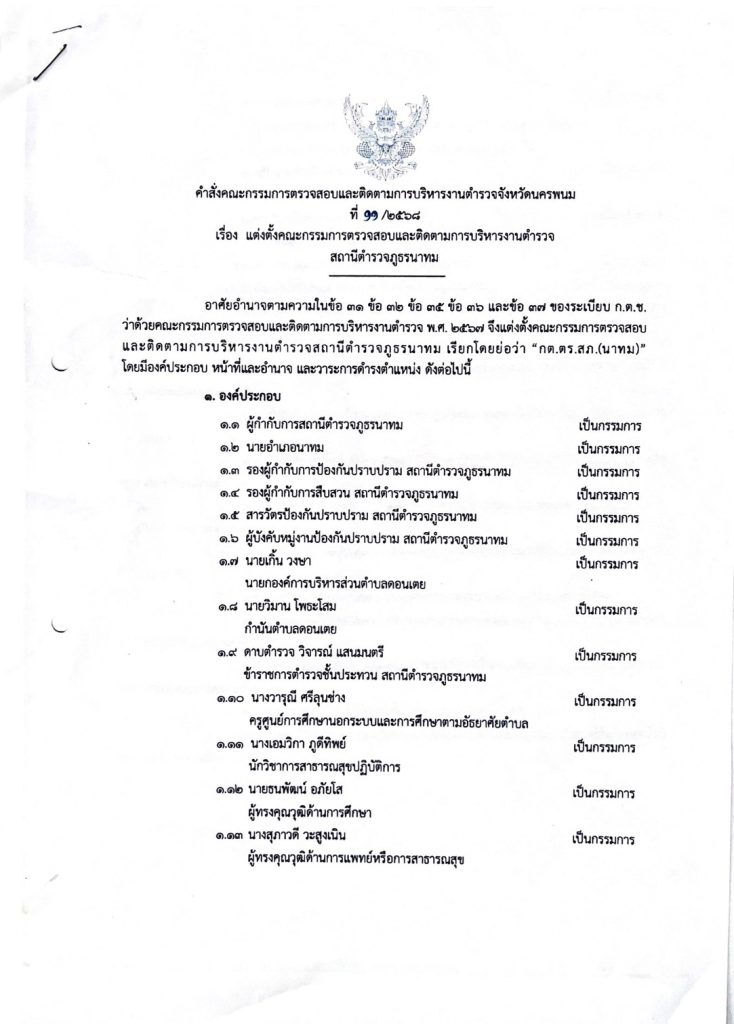 คำสั่งแต่งตั้ง คณะกรรมการตรวจสอบและติดตามการบริหารงานตำรวจ (กต.ตร.) ของสถานีตำรวจภูธรนาทม
